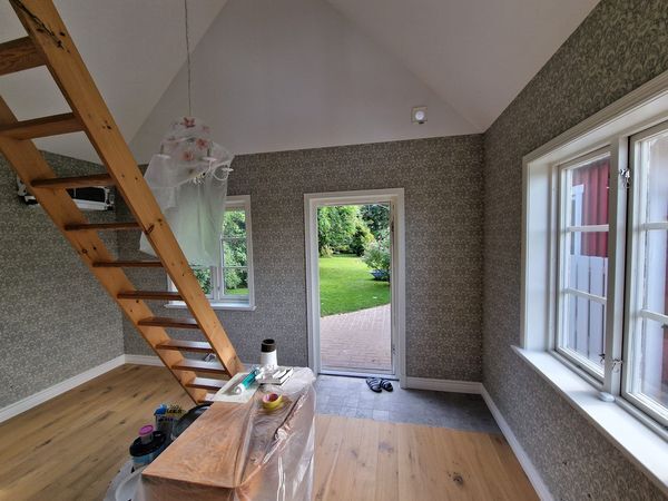 Jag tapetserar med samma omsorg som om det vore i mitt eget hem. Jag hjälper dig att välja en tapet som passar rummet och ser till att underlaget är slätt och redo. Mönster passas noggrant så att skarvarna försvinner och motivet linjerar runt hörn, vid fönster och dörrar. Jag arbetar rent och metodiskt och skyddar golv och möbler under hela arbetet. När allt är klart går jag igenom resultatet med dig så att du känner dig trygg och nöjd.